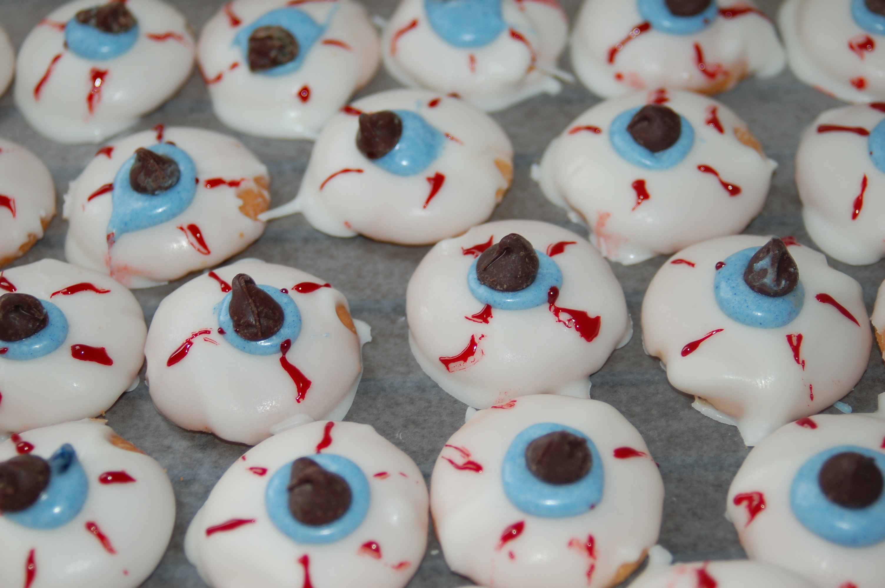 Our contribution to the party potluck? Eyeball cookies… Check them out. The Big One and I do good work, huh? Happy Haunting!