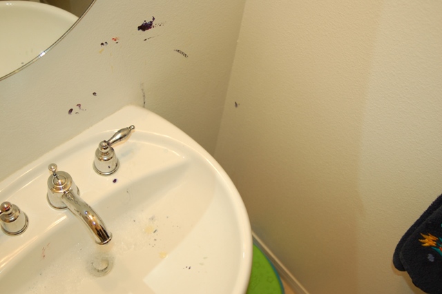 I’m not sure, but I think it was all the Big One?? What I failed to capture were the lines and splatters of paint that extended all the way down the sink and wall.
