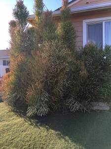 A little background here…. Yes, we have fake grass. But I wanted some living plants as well. So we have a planter area that butts up against the house. In my infinite wisdom I planted succulents including fire sticks there. I thought the hearty cactus plants that change from green to yellow to orange to red would be a fantastic pop of color in the front of the house. In my defense it was a great idea! They looked beautiful for the first few years. And then they decided that they were really, really, really happy where they were planted and they began to multiply and grow larger and larger and larger. They really started to take over. It was a challenge to get to the hose. The flagpole access was being impeded. I could barely get to the electrical outlet to plug in the Christmas decorations. My lovely fire sticks were becoming a huge nuisance.