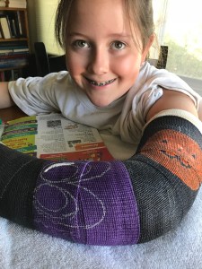 So starting school in the midst of a terrible heat wave while wearing a long arm was tough but she managed it. Her three weeks were up, we got the cast removed and all was good.
